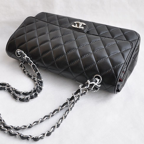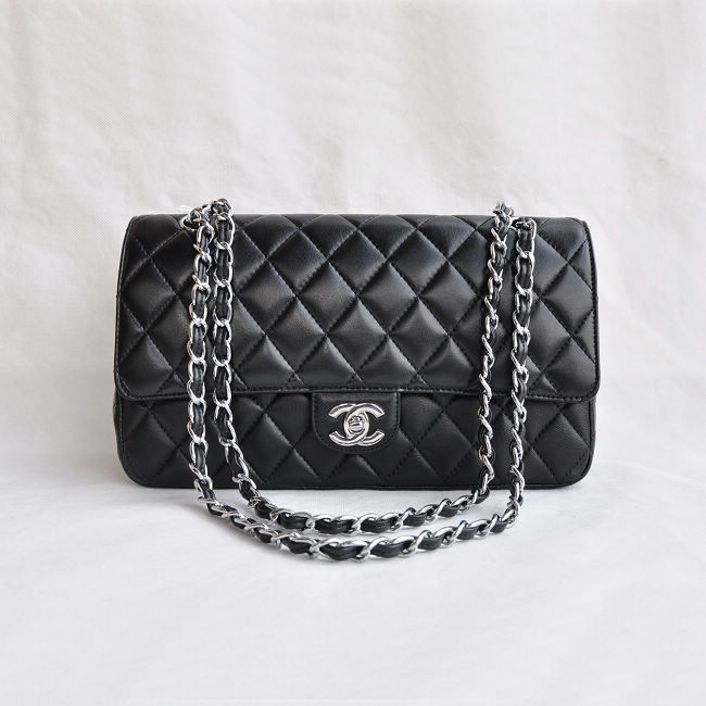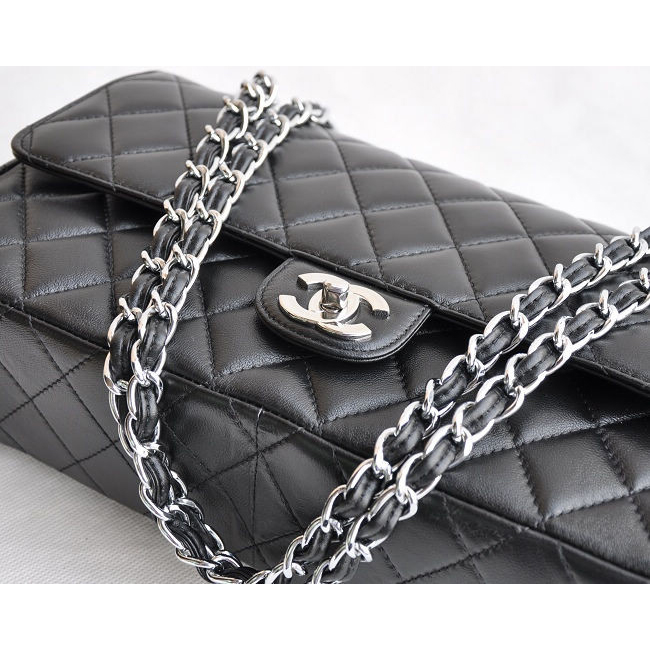 Chanel Classic Flap Bag 1113 Sheepskin leather in Black with Silver