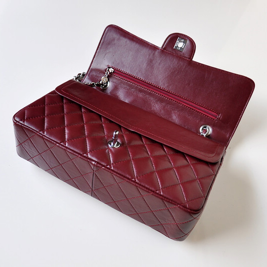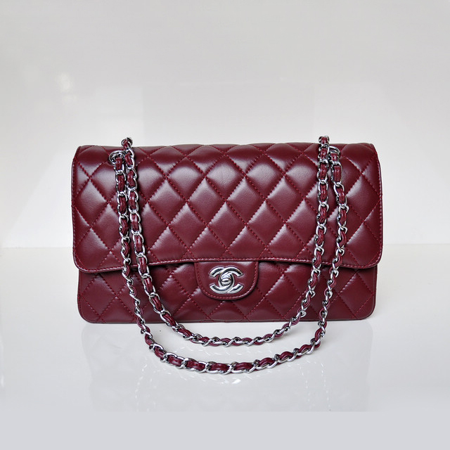 Chanel Classic Flap Bag 1113 Sheepskin leather in Claret with Silver