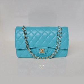 Chanel Classic Flap Bag 1113 Sheepskin leather in lake Blue with Gold