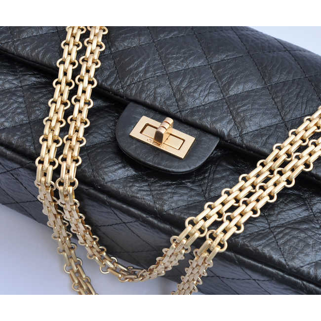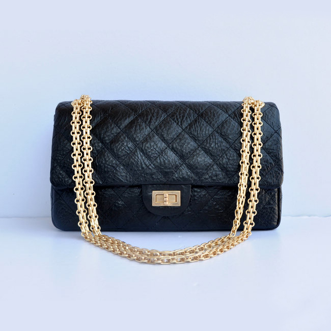 Chanel Classic Flap Bag A30226 elephantskin black with Antique Gold chain