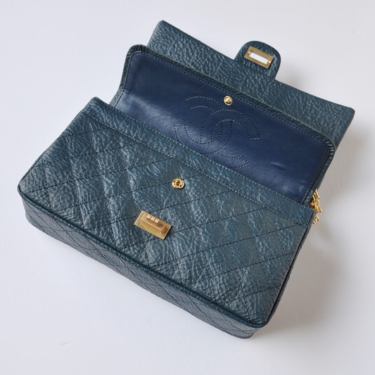 Chanel Classic Flap Bag A30226 elephantskin blue with gold chain