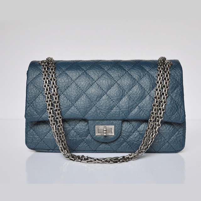 Chanel Classic Flap Bag A30226 elephantskin blue with silver chain