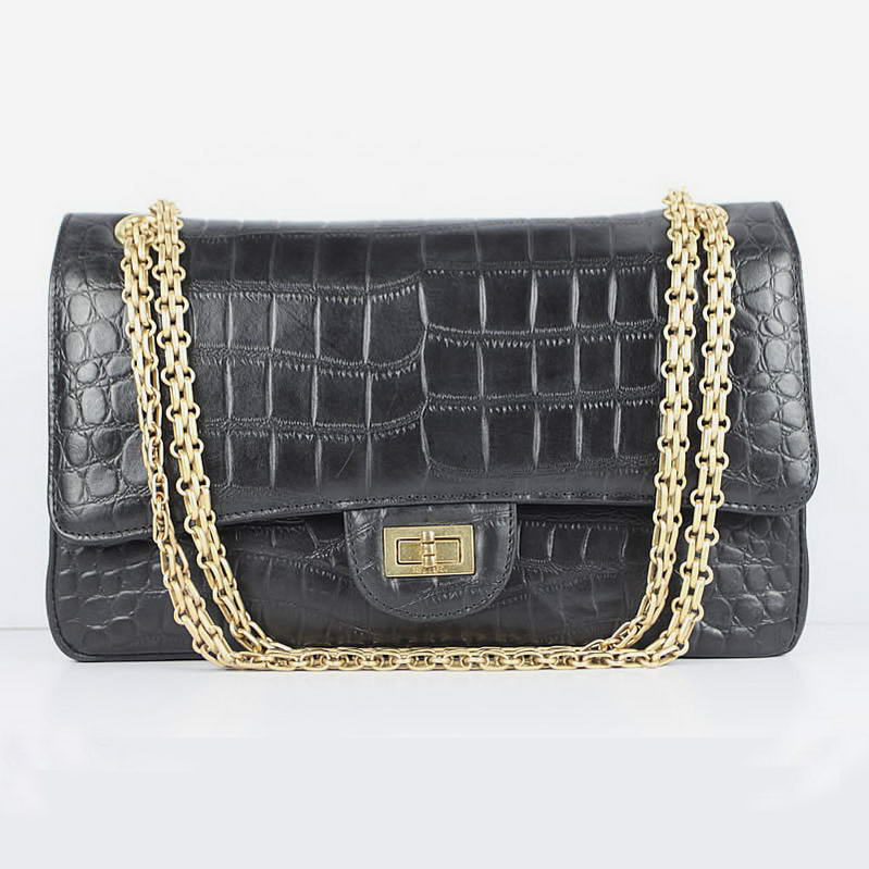 Chanel Classic Flap Bag A37587 Croco Veins Original Leather Black Golden