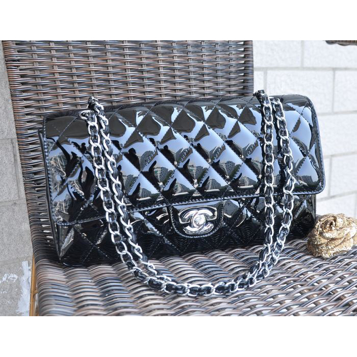 Chanel Classic Flap Bag Black Patent Leather 1113 Silver