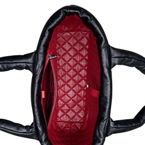 - Reversible from black horizontal lambskin quilting to red diamond nylon quilting
