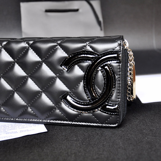 Chanel Combon Original Patent Leather Zip Around Wallet C50078 Black