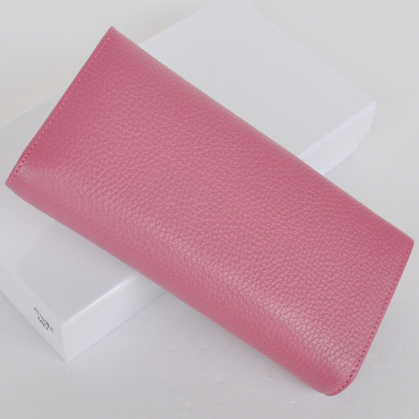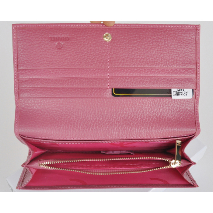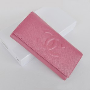 Chanel Emboss CC Logo Litchi stripes leather Bi-Fold Wallet C514 Rose