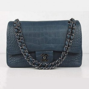 Chanel Fall Winter 2012 Croc Veins Leather Flap Bag A01112 Blue
