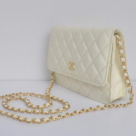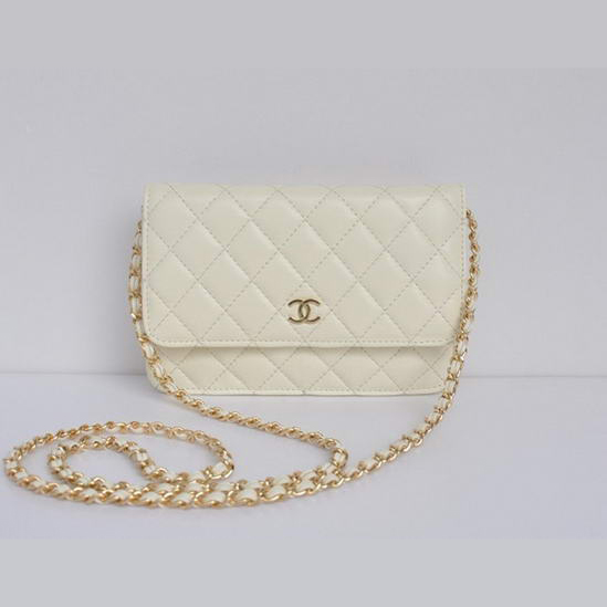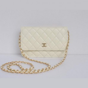 Chanel Flap Bag Lambskin Leather A33814 White Golden