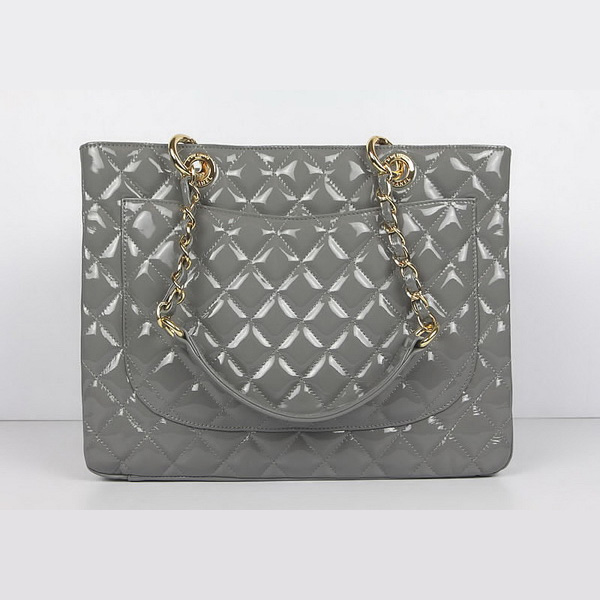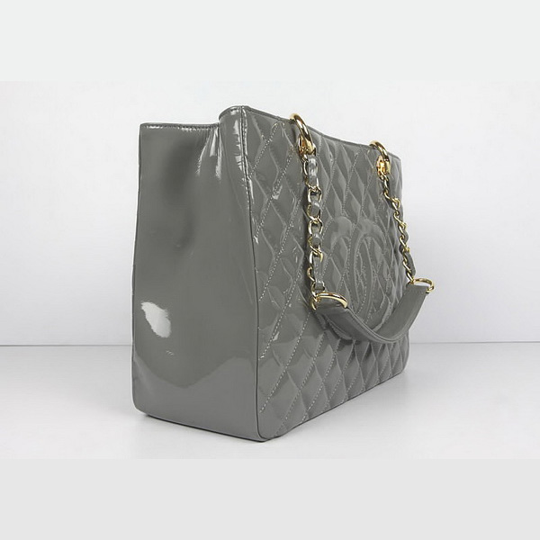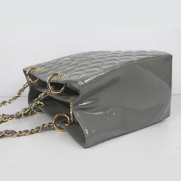 Chanel Gray Patent Leather Handbags 50995 Gold Hardware