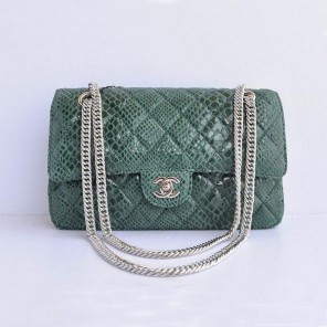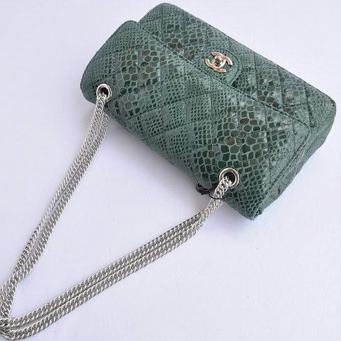 Chanel Green Snakeskin Leather Flap Bag Silver Hardware