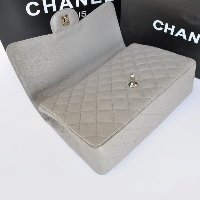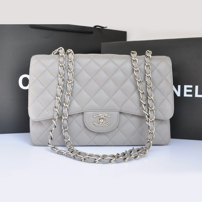 Chanel Jumbo Classic Caviar leather Flap Bag A36076 Grey