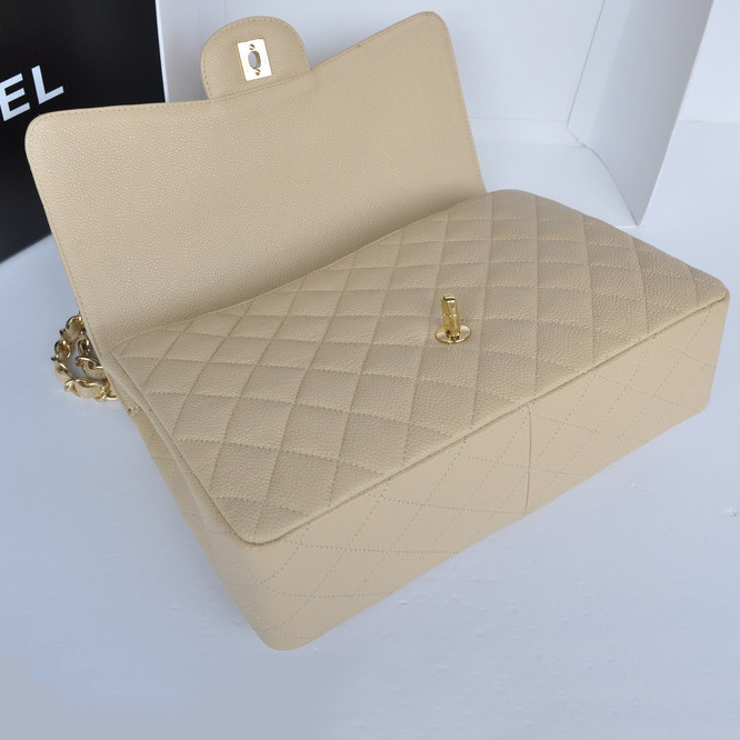 Chanel Jumbo Classic Original Caviar leather Flap Bag A36076 Apricot