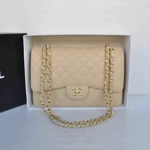 Chanel Jumbo Double Flaps Bag Apricot Original Caviar Leather A36097 Gold