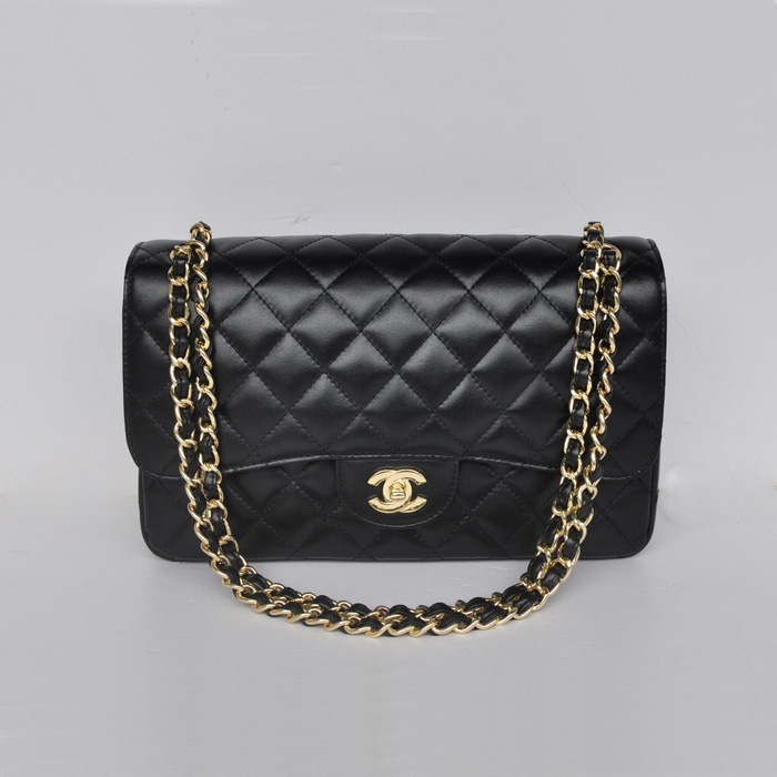 Chanel Jumbo Quilted Classic Cannage Patterns Flap Bag A58600 Black Gold