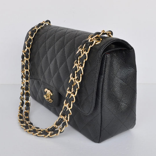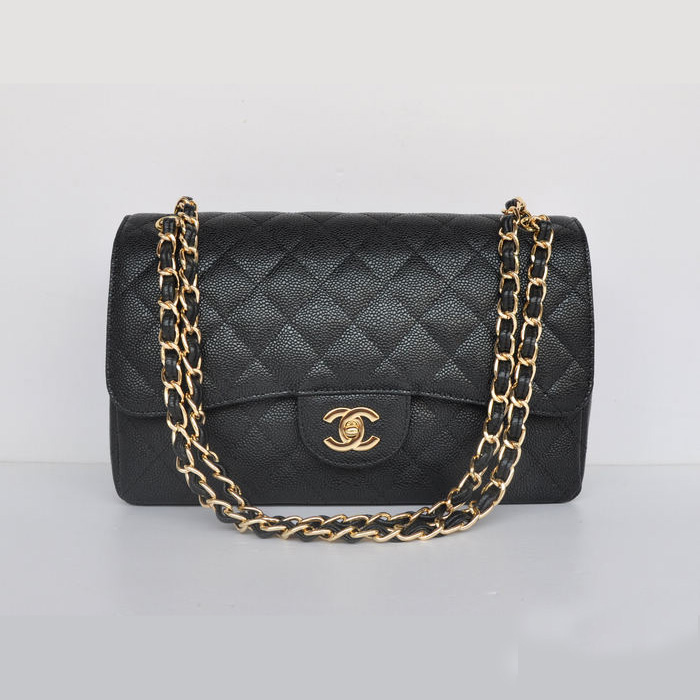 Chanel Jumbo Quilted Classic Cannage Patterns Flap Bag A58600 Black Gold