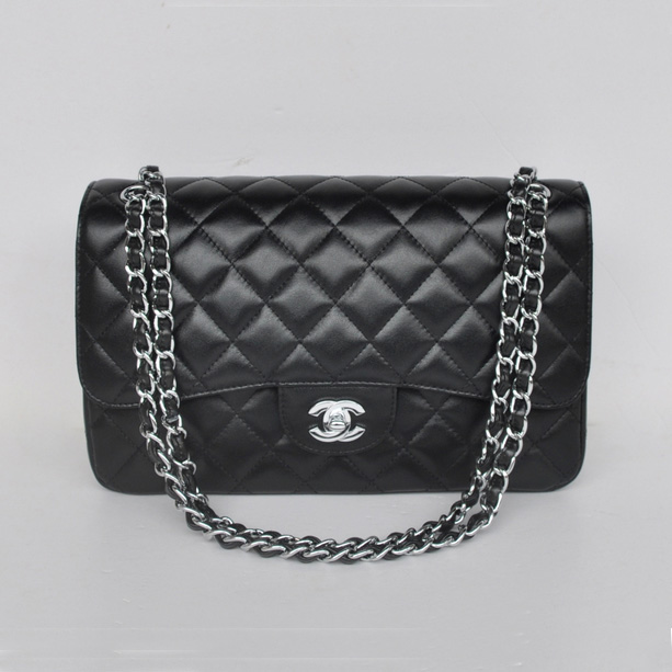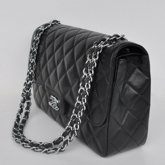 Chanel Jumbo Quilted Classic Cannage Patterns Flap Bag A58600 Black Silver