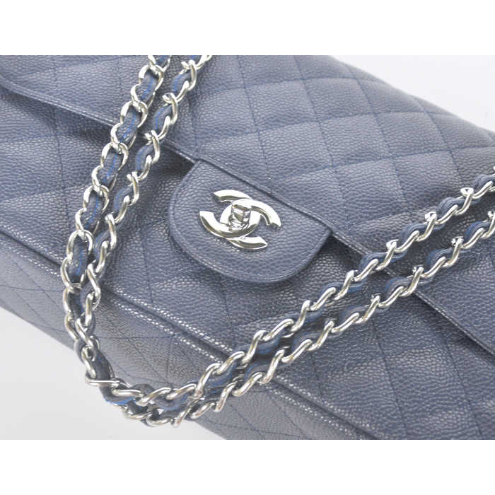 Chanel Jumbo Quilted Classic Caviar leather Flap Bag A58600 Royalblue Silver