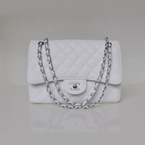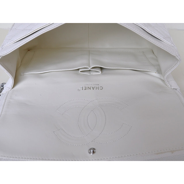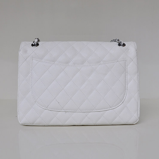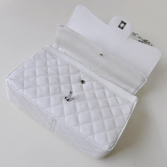 Chanel Jumbo Quilted Classic Caviar leather Flap Bag A58600 White Silver