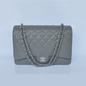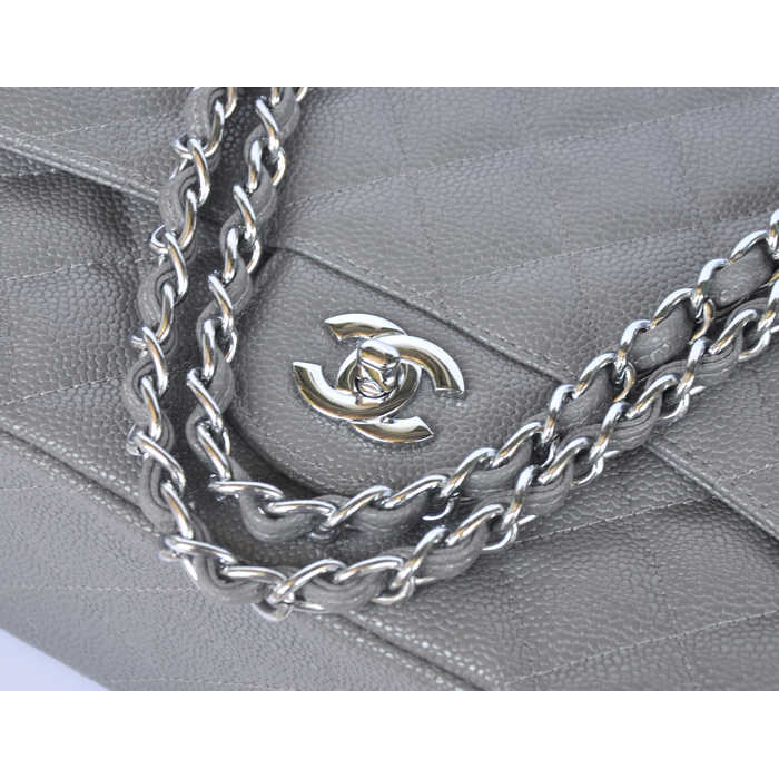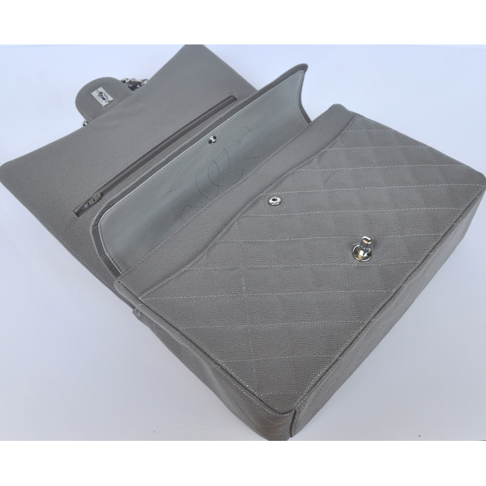 Chanel Jumbo Quilted Classic Caviar leather Flap Bag A58601 Grey Silver