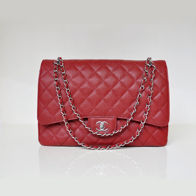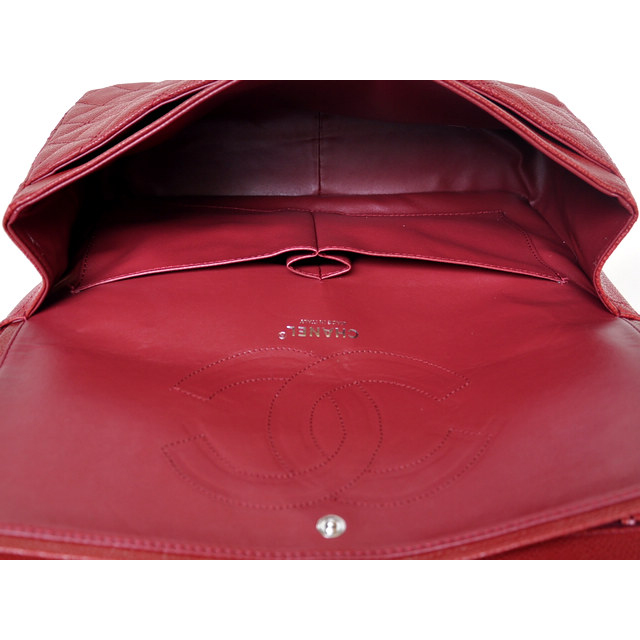 Chanel Jumbo Quilted Classic Caviar leather Flap Bag A58601 Red Silver