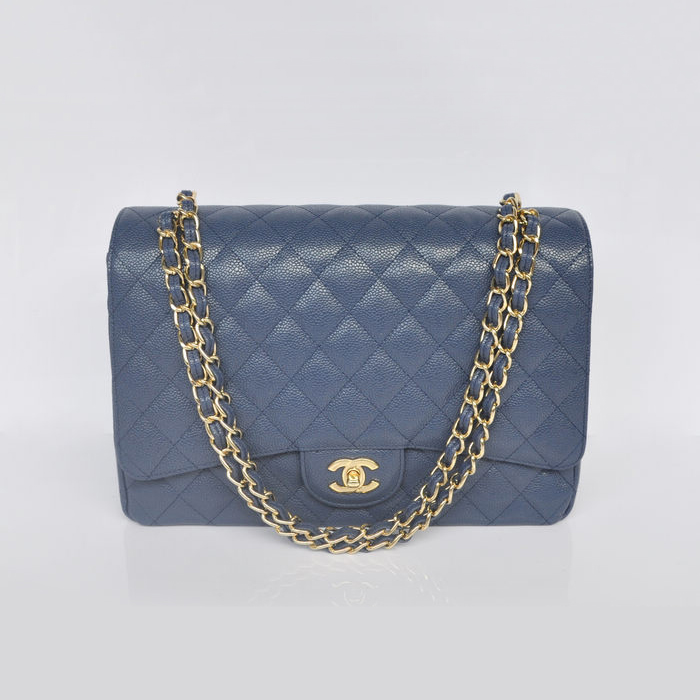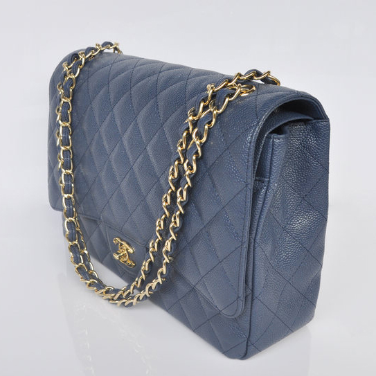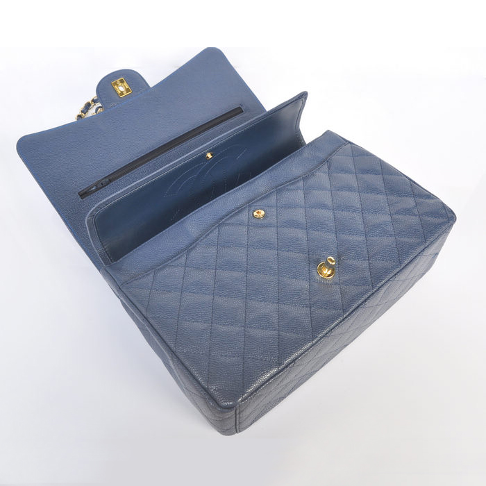 Chanel Jumbo Quilted Classic Caviar leather Flap Bag A58601 Royalblue Gold
