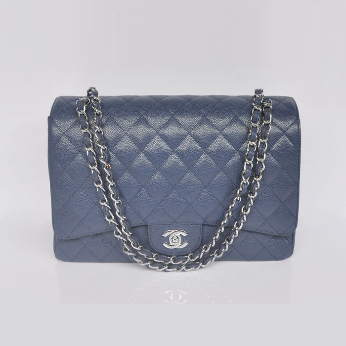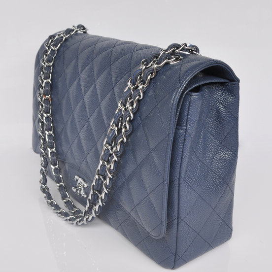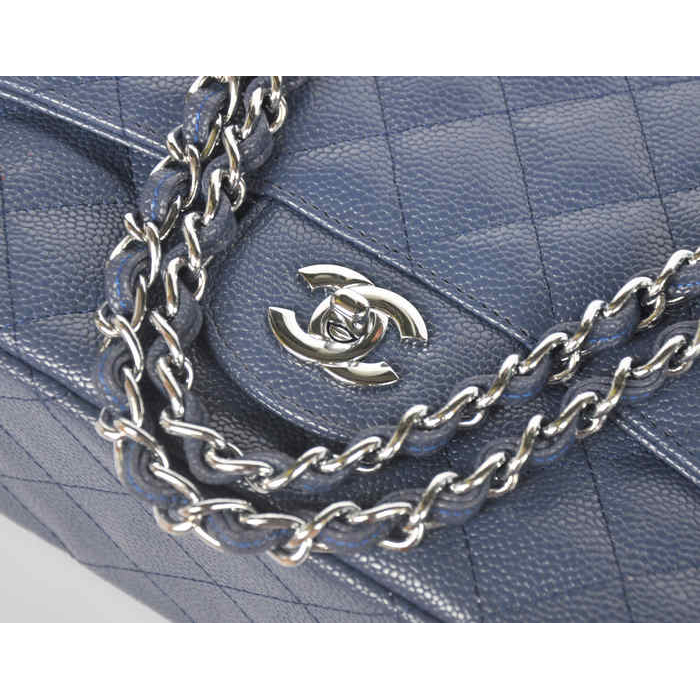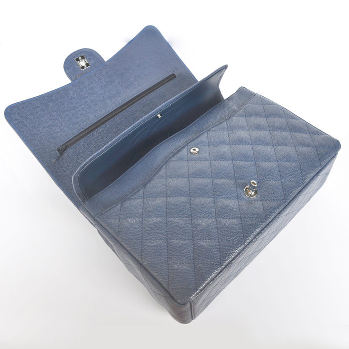 Chanel Jumbo Quilted Classic Caviar leather Flap Bag A58601 Royalblue Silver