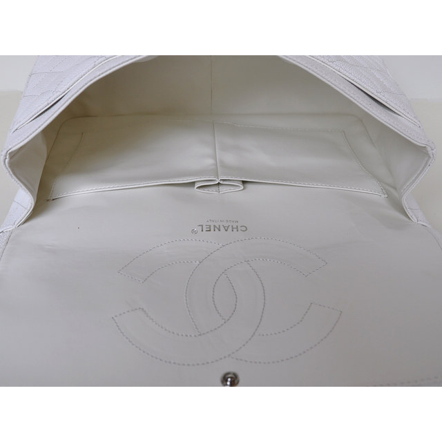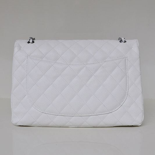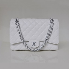 Chanel Jumbo Quilted Classic Caviar leather Flap Bag A58601 White Silver