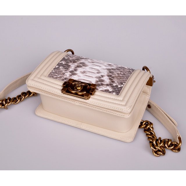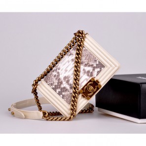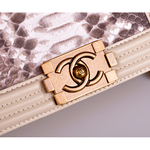 Chanel LE Boy 2014 Flap Shoulder Bag Real Python Leather A67063 Beige