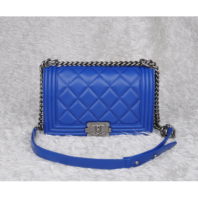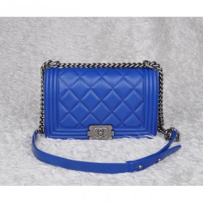 Chanel Le Boy 2014 Flap Shoulder Bag Original Leather A92105 Medium Blue
