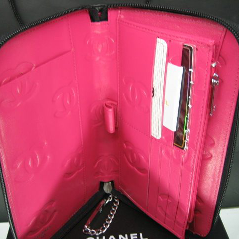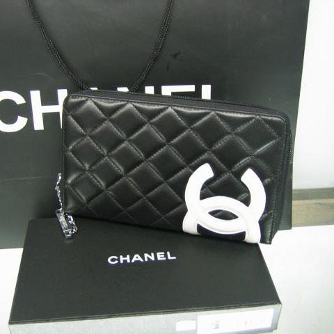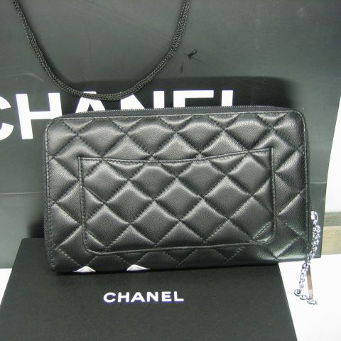Chanel Leather White CC Logo Long Zipper Wallet 26710 Black