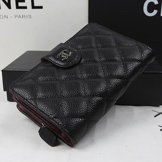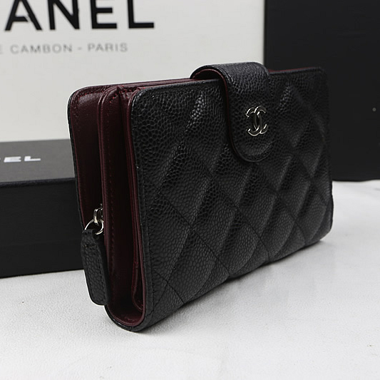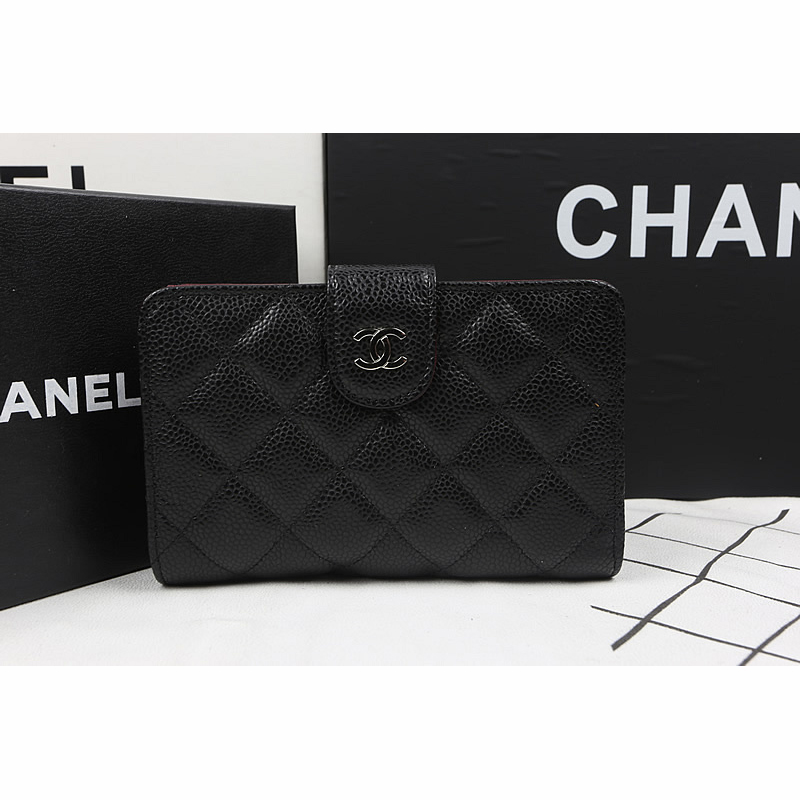 Chanel Matelasse Bi-Fold Wallet Black Original Caviar leather A48667 Silver