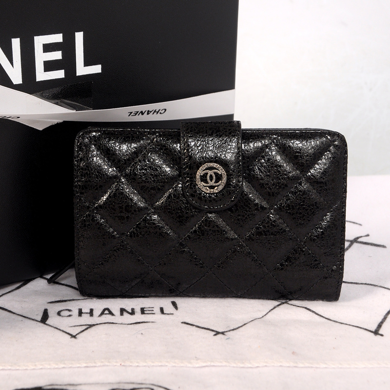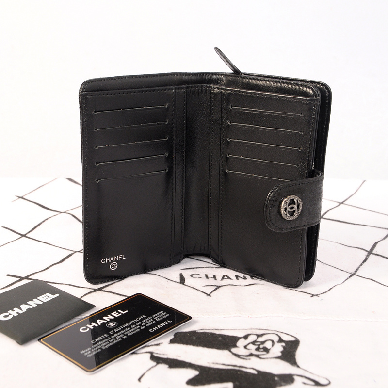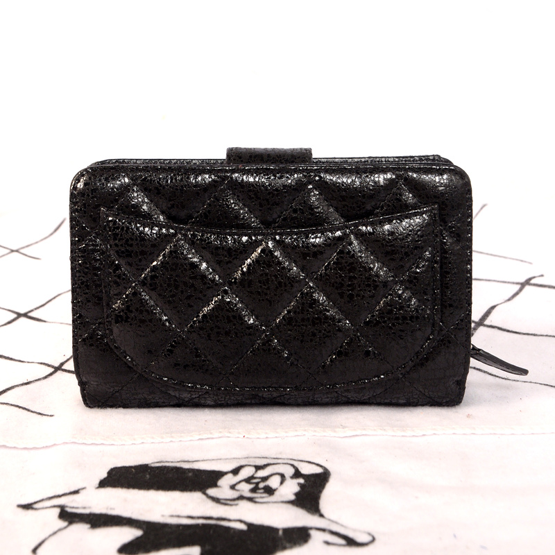 Chanel Matelasse Bi-Fold Wallet Glazed Crackled Leater C004 Black with Silver
