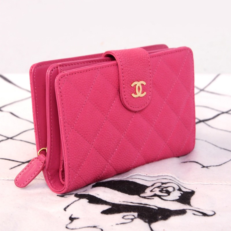 Chanel Matelasse Bi-Fold Wallet Nubuck Cannage leather C0041 Rose