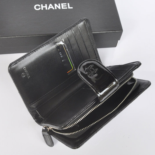 Chanel Matelasse Bi-Fold Wallet Patent Leater A051 Black