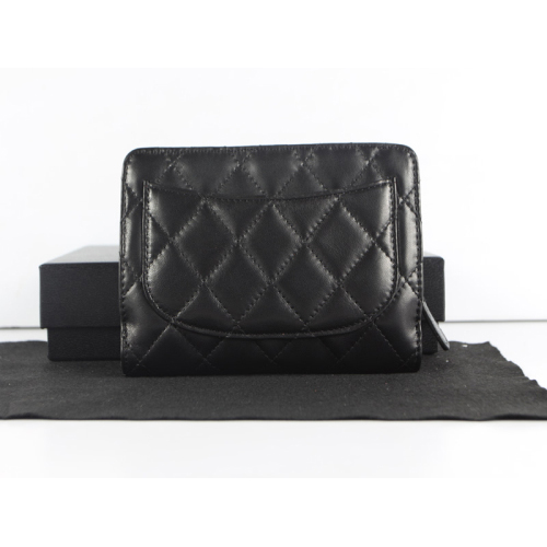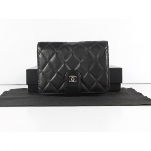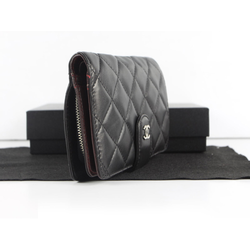 Chanel Matelasse Bi-Fold Wallet Sheepskin Leather C004 Black