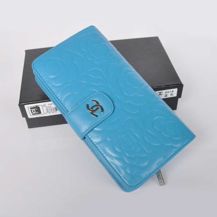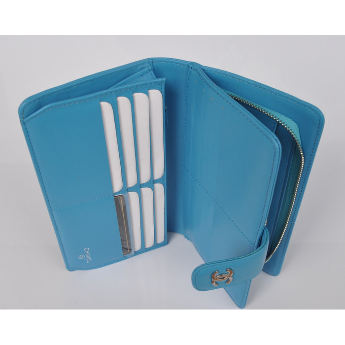 Chanel Matelasse Bi-Fold Wallet Sheepskin Leather C091 Blue