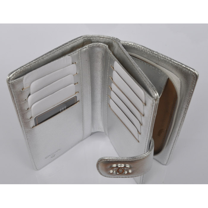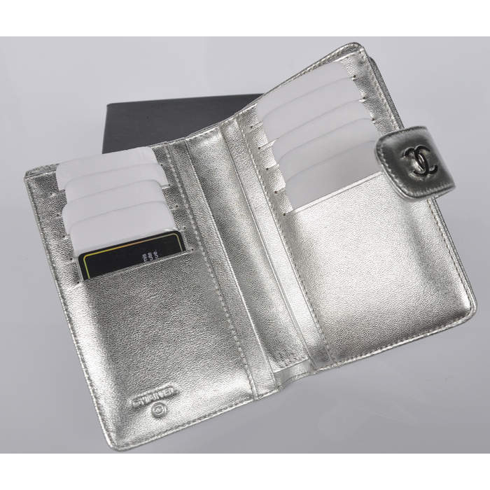 Chanel Matelasse Bi-Fold Wallet Sheepskin Leather C092 Silver