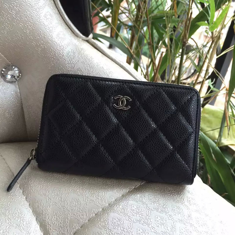 Chanel Matelasse Zip Around Wallet Original Caviar Leather A50071 Black