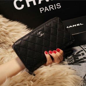 Chanel Matelasse Zip Around Wallet Sheepskin A80131 Black