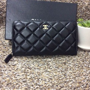 Chanel Matelasse Zip Around Wallet Sheepskin leather A50071 Black