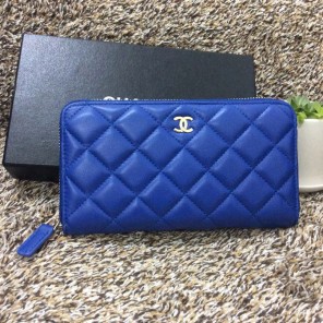 Chanel Matelasse Zip Around Wallet Sheepskin leather A50071 Blue