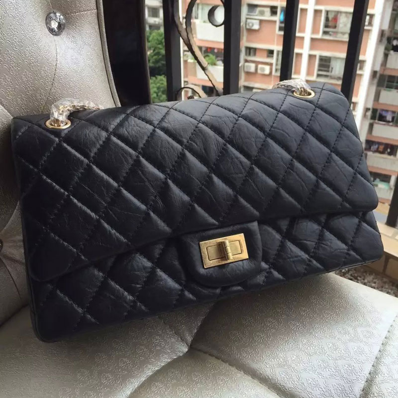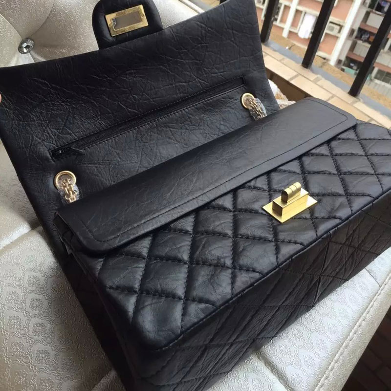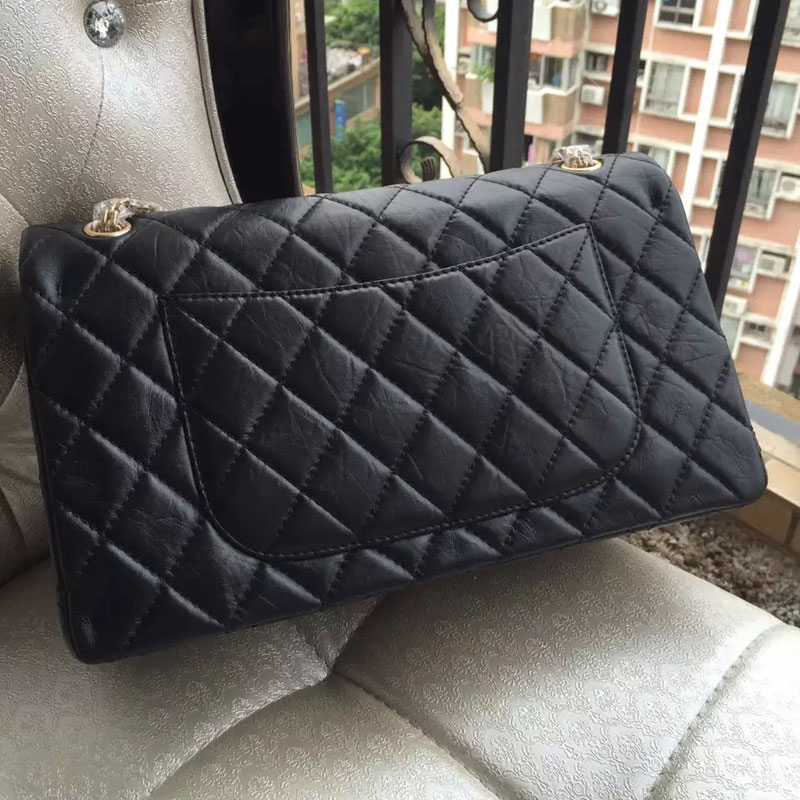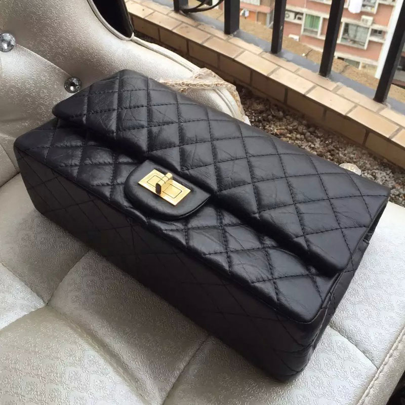 Chanel Original Glazed Crackled Leather Classic Flap Bag A30227 Black Gold