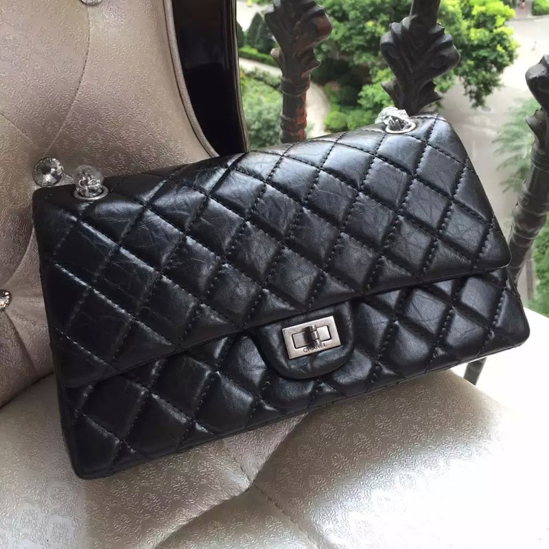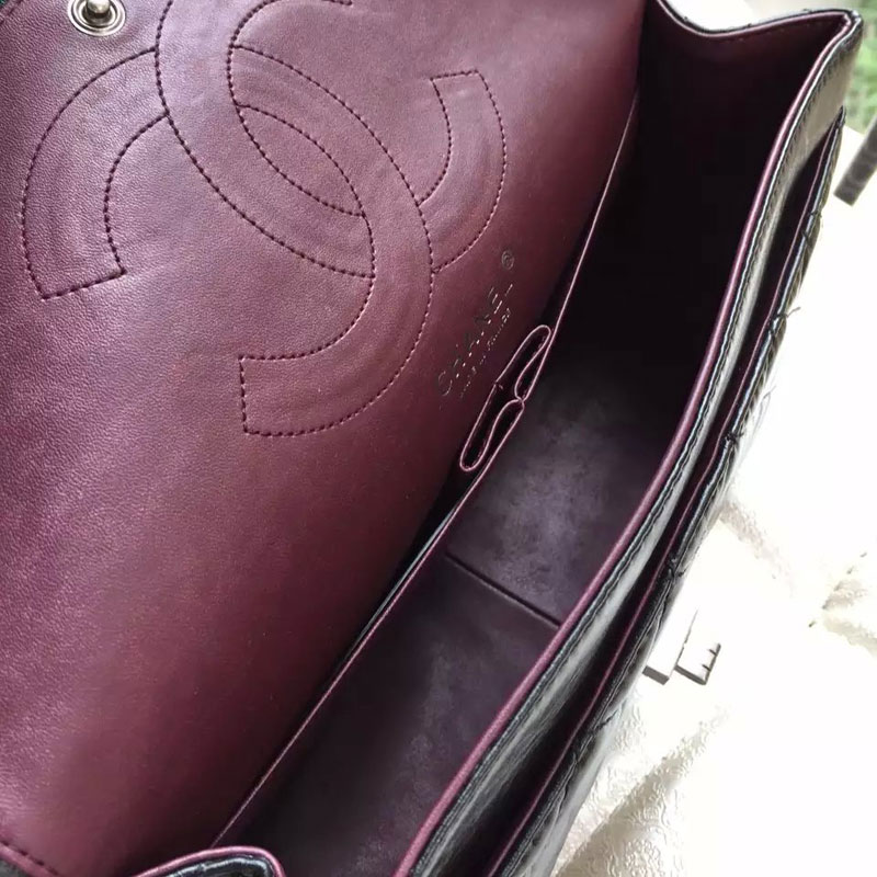 Chanel Original Glazed Crackled Leather Classic Flap Bag A30227 Black Silver