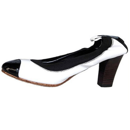 - Chanel patent calfskin pumps white,rounded cap toe. Leather bow tie detail along vamp. Leather lining. patent calfskin pumps with cap toe and elastic edges.