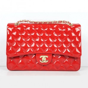 Chanel Patent Cow Leather handbags 1113 Red Gold