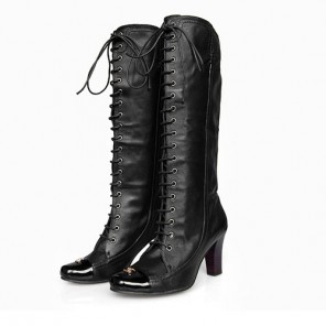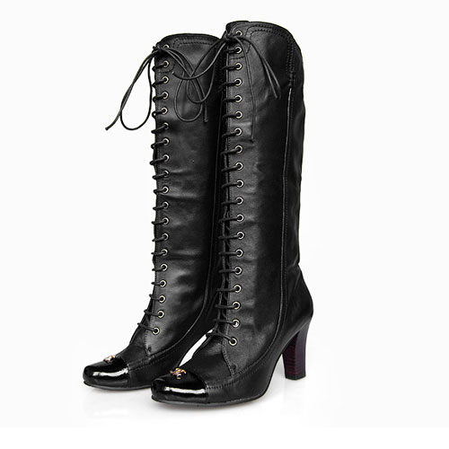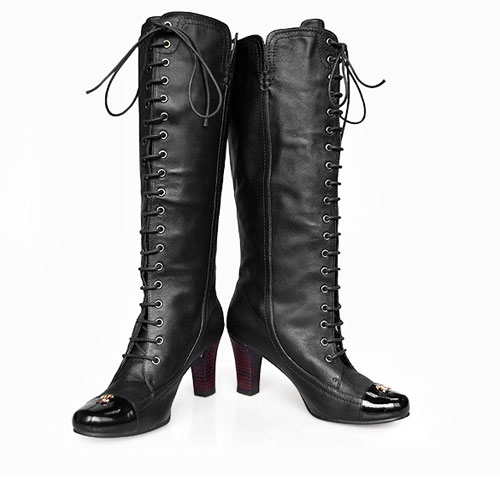 Chanel Red Leather Lace-up Design Boots