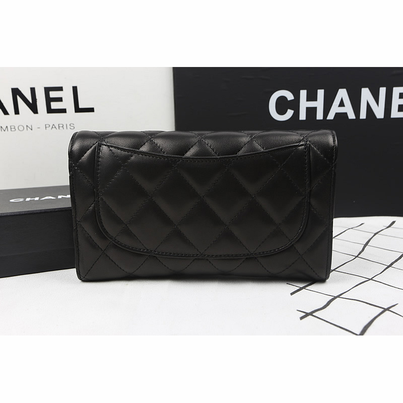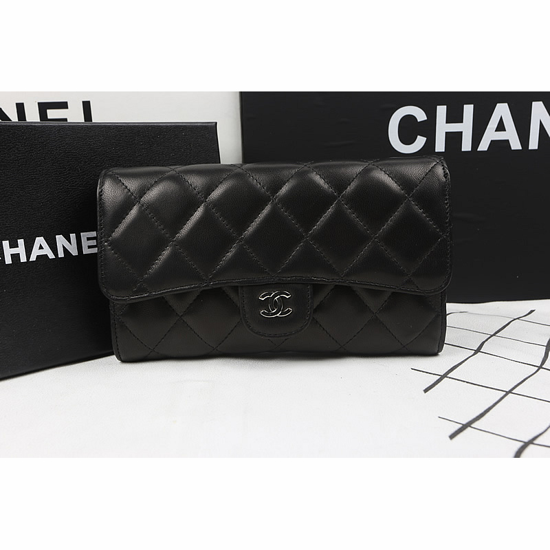 Chanel Tri-Fold Wallet Black Original Sheppskin A31506 Silver