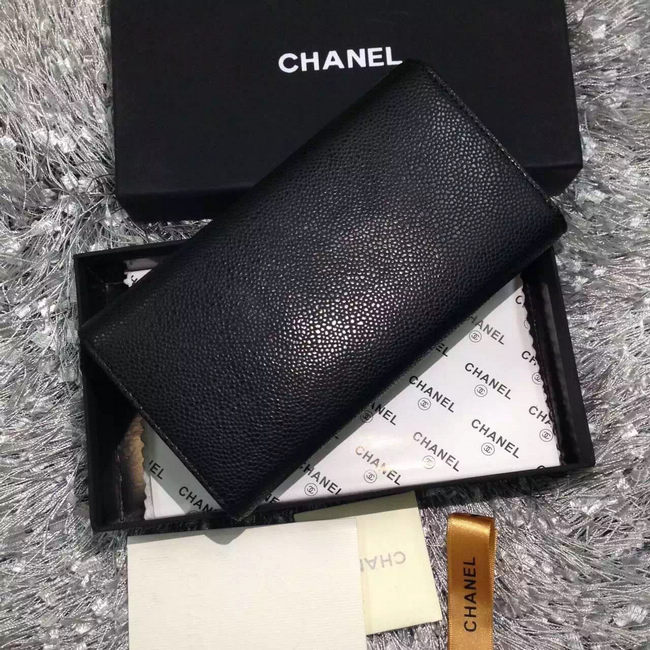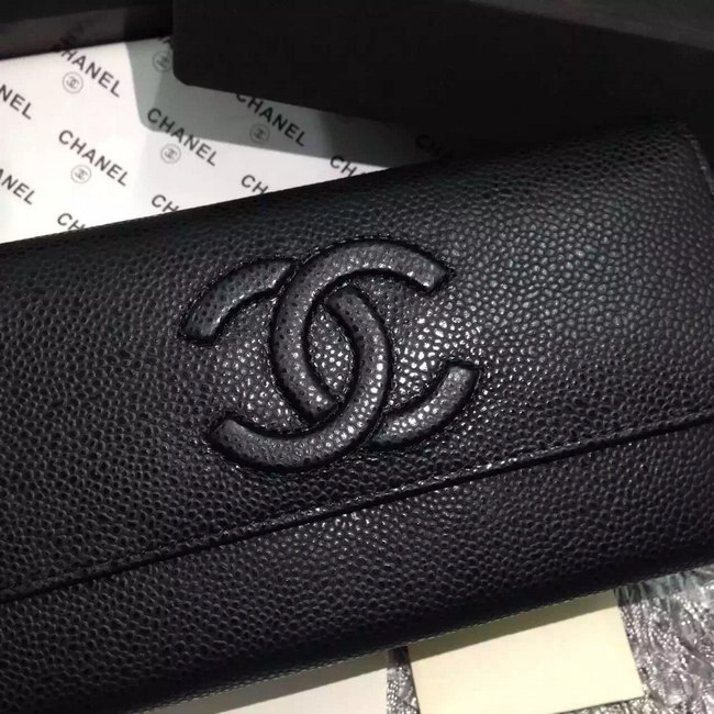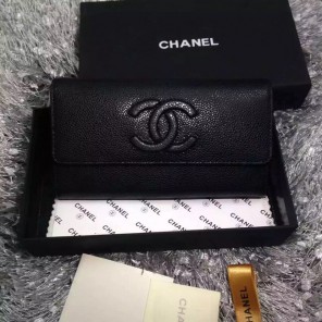 Chanel Tri-Fold Wallet Caviar Leather A48656 Black