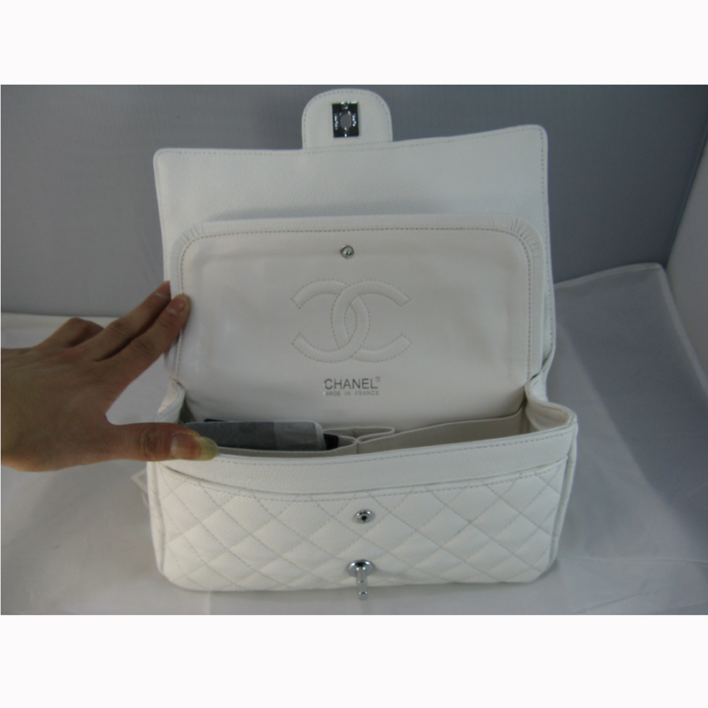 - Closure: Classic Chanel flap with front interlocking CC clasp